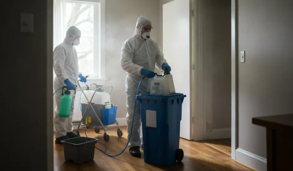 Notre entreprise réunit des techniciens formés aux scènes complexes (insalubrité, Diogène, post-mortem), équipés d’EPI et de matériels professionnels de décontamination et désodorisation.